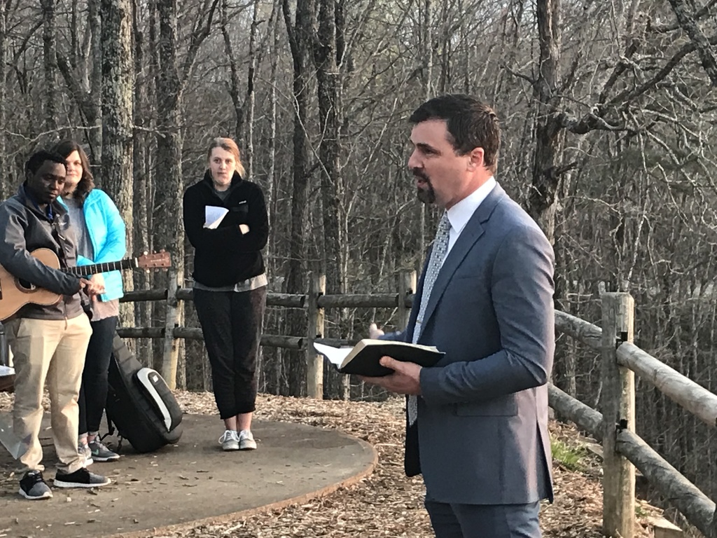 Easter Community Sunrise Service, April 1, 2018. Rev. Josh Parham of Riverside Baptist brought the devotional, and Rev. Olivier Hakizimana of Lookout Valley Baptist brought the music. Beautiful sunrise.